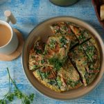 Serving plate per omelet ko flip ker lein aur slices mein cut ker ka serve karein!