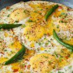 -Ek,ek ker ka anday shamil karein,lal mirch crushed aur hari mirchein dal ker dhak dein aur halki ancch per 6-8 minutes kliya paka lein.