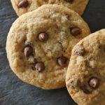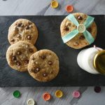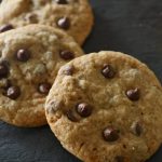Grease baking tray with oil,take a mixture and make a ball,place it over the baking tray and slightly press it and add chocolate chips.