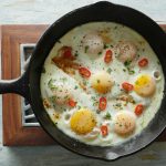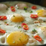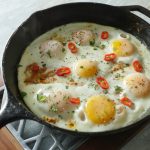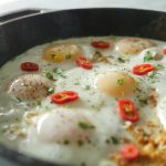 Now add eggs one by one and cook on low flame for 2-3 minutes then cover and steam cook until eggs are done.