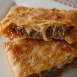 Beef patty rakh dein aur flat bread (roti) ka tamam edges ko fold ker lein aur egg white laga ker seal ker lein.