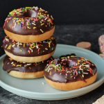 Doughnuts rakh dein,non-stick spray karein aur 150C per 4-5 minutes kliya bake ker lein.
