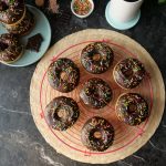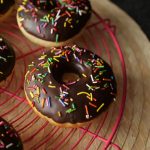 Dip one side of doughnuts in melted chocolate and place it on wire rack to allow excess melted chocolate to drip off.