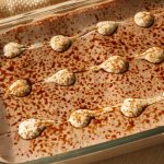 Now dip rusk one by one through the coffee+milk mixture to absorb the liquid then settle into a serving dish forming a bed.