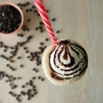 Serving glass mein ice cubes,tayyar cold coffee aur ice cream scoop dal dein aur chocolate syrup dizzle ker ka serve karein.