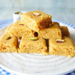 Cut into desired shapes,garnish with pistachios & serve.