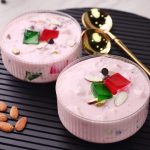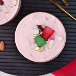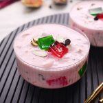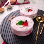 -Garnish with green & red jelly cubes,almond,chocolate chips,pistachio & serve chilled!