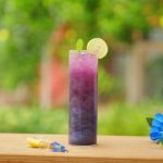 -In a glass,add crushed ice,prepared butterfly pea syrup (3/4 cup),edible silver glitter & mix well.