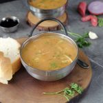 -Add carrots,onion,celery stalks,potatoes,garlic,chicken stock cube,pink salt,cover partially & cook on low flame for 25-30 minutes.
