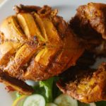 Marination mein whole chicken dal ker ache tarhan mix ker lein aur chicken legs ko tie ker lein.