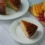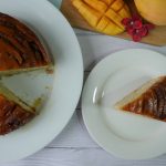 In 8 x 8 inch baking pan,add caramelized sugar and place mango slices & set aside.