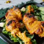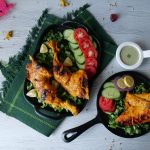 Frying pan mein marinated chicken pieces aur pani dal ker dhak dein aur halki ancch per gul janay tak steam cook ker lein (18-20 minutes) aur bech bech mein sides turn kertay rahein aur baqi bache hoye marinade ko bad mein use kernay kliya rakh dein.