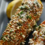 Brush corn with mayonnaise+ cream,spinkle feta cheese,red chili powder,paprika powder,jalapenos, fresh coriander and squeeze lemon juice.