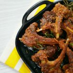 -Add spice coated mutton chops & fry on low flame from both sides until golden brown.
