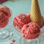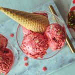 Skewer ki madad sa gently swirls bana lein,ice cream ki surface ko butter paper sa cover ker lein aur dhak ker 8 hours ya overnight kliya freeze ker lein (yields: 2.5 litres).