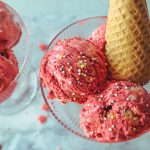 Make swirls gently with the help of skewer,cover the surface of ice cream with butter paper then cover with lid and freeze for 8 hours to overnight (yields: 2.5 litres).