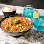 Reserved fried lehsan aur hara pyaz leaves sa garnish ker lein aur boiled rice ka saath serve karein.
