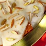 -Ab fried bread slices ko sheera mein dip karein aur serving dish mein assemble ker lein.
