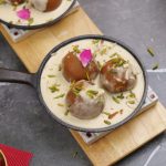 -Heated small cast iron pan mein gulab jamun,tayyar garam rabri,pista aur badam dal dein aur rose petal sa garnish ker ka serve karein!