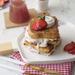 -Add 2 tbs of strawberry cream mixture & flip slice on another slice.