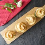 Add chicken stuffing and starting from one end,roll carefully to form a rose shape (makes 6-8).