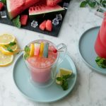 Blender mein watermelon,kheera,lemon juice,shahad aur lemon green tea dal ker ache tarhan blend karein & strain ker lein.