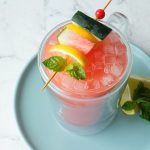 Serving glass mein ice cubes aur water melon green tea dal ker serve karein!